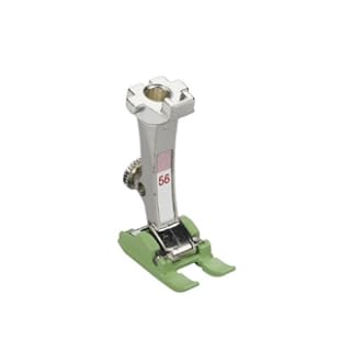 Offener Stickfuss #56Der offene Stickfuss ist besonders geeignet für Applikationen jeglicher Art, Richelieustickerei, zum Nachnähen von Mustern oder Linien, Kurven und Ecken sowie zum Aufnähen von allerlei Bändern, wie Zier- oder Gummibändern.